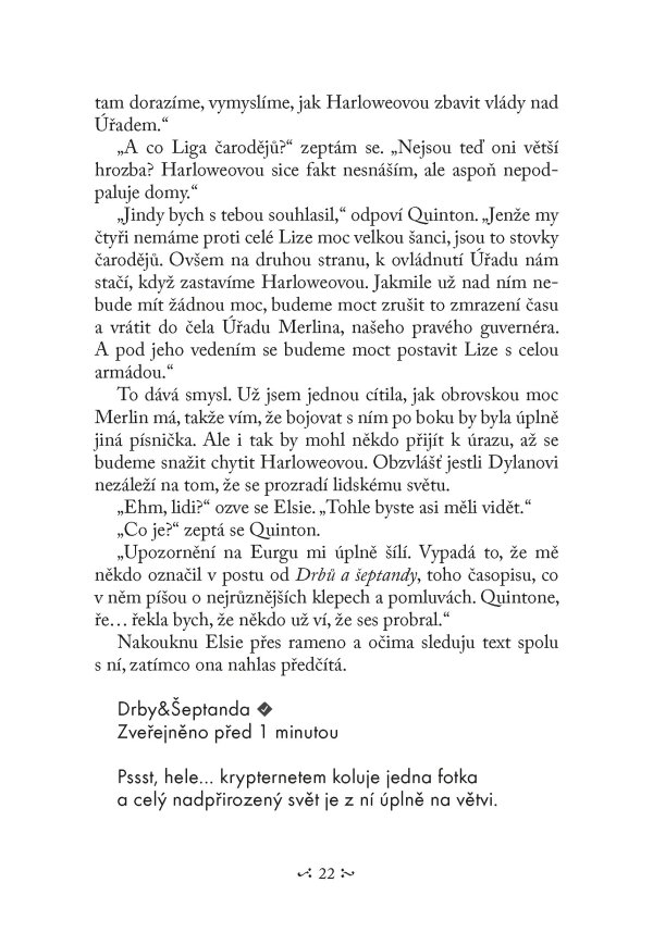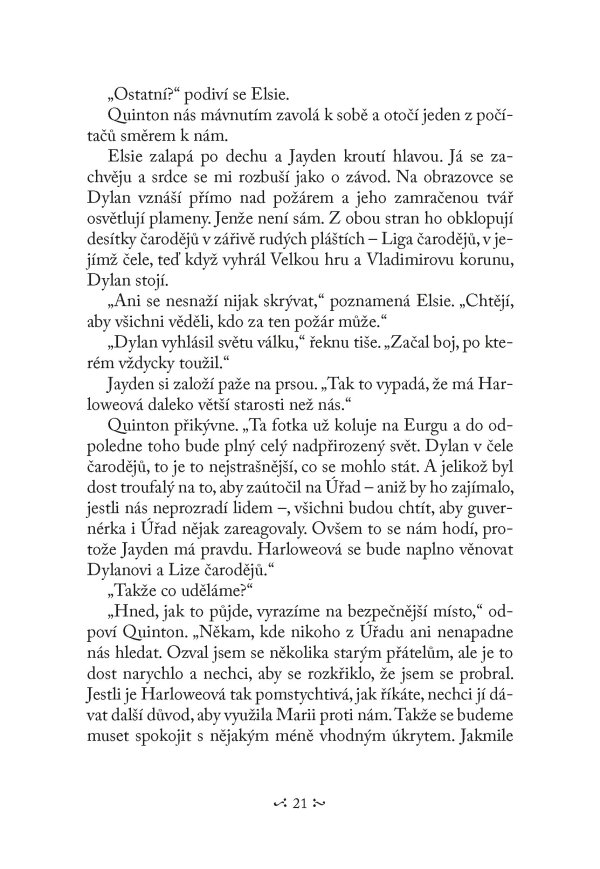 Pro Amari tak není bezpečno ani na Úřadě, ani mezi čaroději Ligy, a její bratr Quinton, který se konečně vrátil mezi agenty, je pevně rozhodnutý postarat se, aby se jeho sestra do války nezapojila. Jenže Amari se svými přáteli usoudí, že musejí najít vlastní způsob, jak válku ukončit.