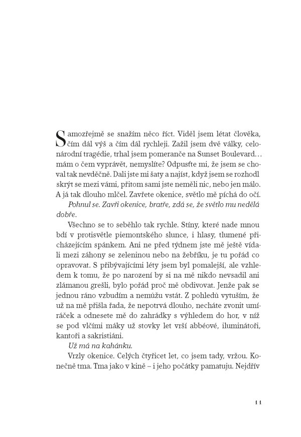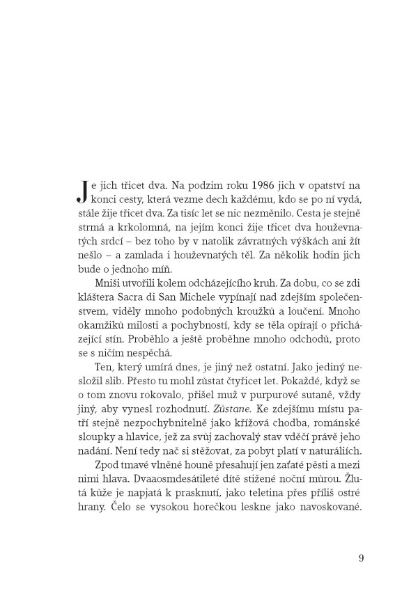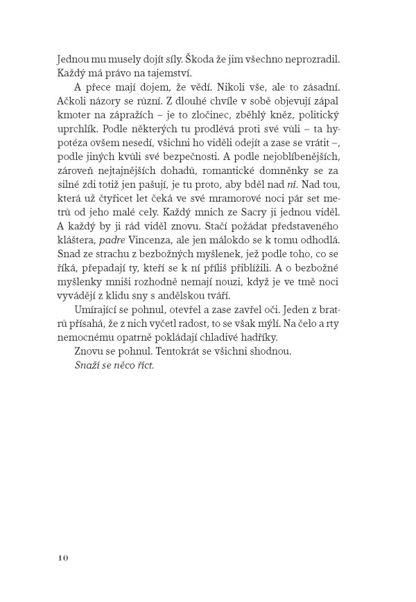 V italském klášteře umírá muž, obklopen tichou přítomností mnichů. Už čtyřicet let mezi nimi žije, aby nad ní bděl. Nad kým nebo nad čím? A proč musí být ukrytá?