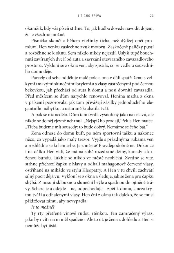 „I ticho zpívá je vášnivým příběhem o urputném nutkání tvořit, divokosti lásky a o tom, jak se obojí vytrácí v chaotické hrůznosti slávy a fanouškovského světa. Mějte se na pozoru: jakmile se do tohoto vzrušujícího příběhu o hudbě, šílenství, lásce a odpuštění začtete, už ho nedáte z ruky.“