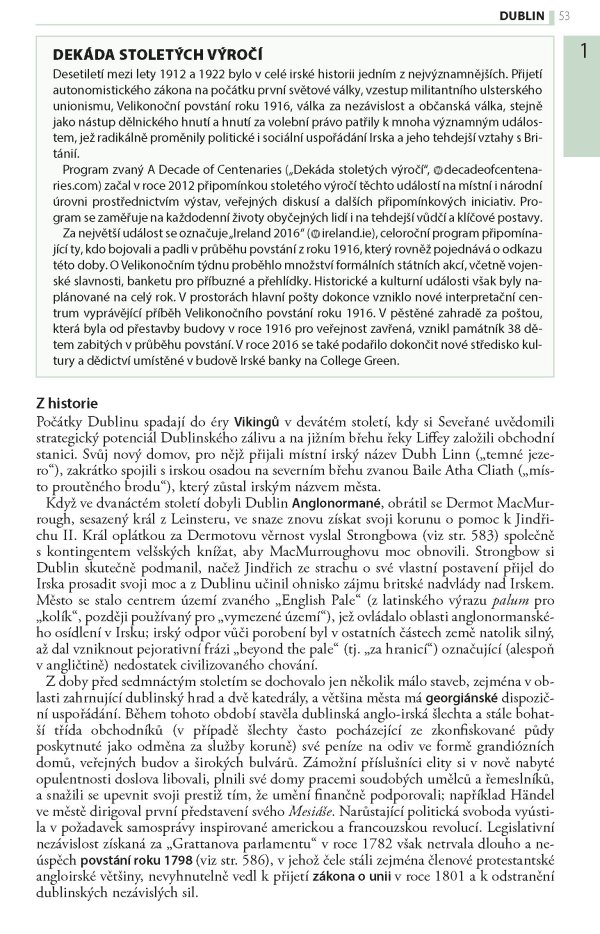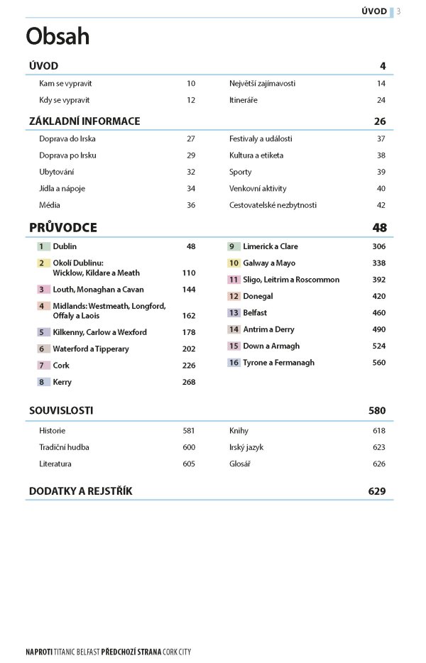 V novém, aktualizovaném a doplněném vydání turistického průvodce Irskem najdete přehledně a detailně popsané hlavní turistické trasy, pamětihodnosti, hotely, ale i tipy na individuální turistiku, včetně cen ubytování, dopravy a potravin. Dozvíte se spoustu užitečných informací o historii a kultuře tohoto nádherného zeleného ostrova, a to od pravěku až po současnost, včetně detailů o turisticky atraktivních místech, ale i o zapadlých koutech, kde na vás dýchne duch a atmosféra dávných dob. Průvodce je doplněn velkým množstvím celobarevných map a krásných fotografií.