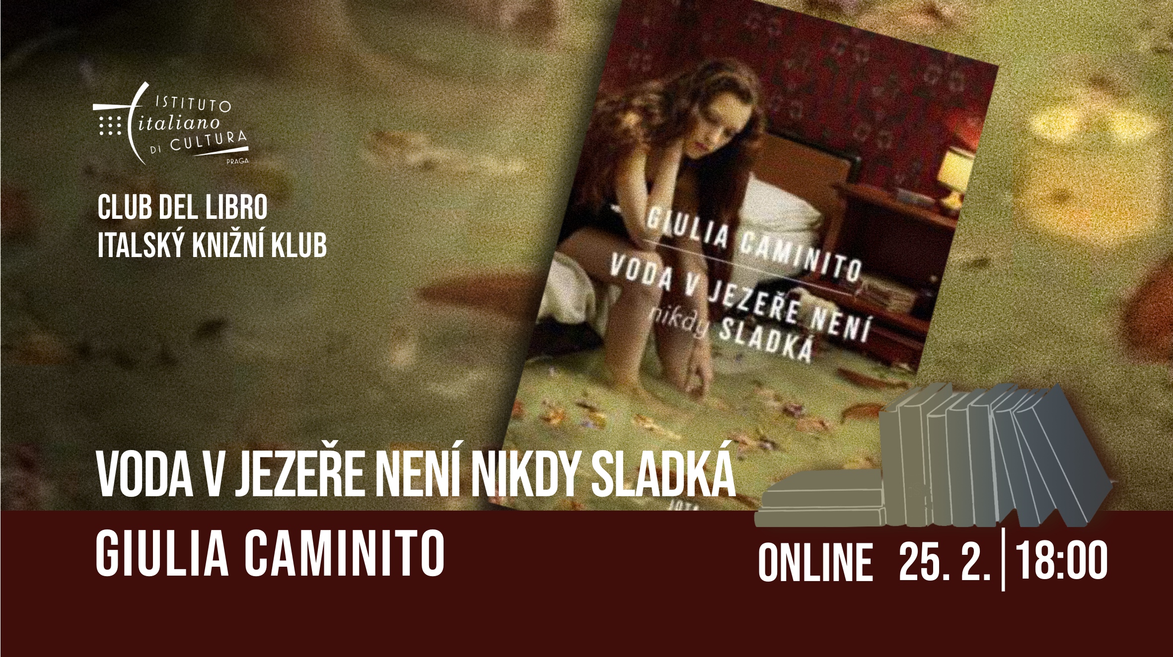 Online čtenářský kroužek věnovaný knize Voda v jezeře není nikdy sladkáItalský knižní klub je čtenářským kroužkem věnovaným italské literatuře přeložené do českého jazyka. Pro online setkání, které se uskuteční 25. února v 18 hodin, byla vybrána kniha Voda v jezeře není nikdy sladká. Akci bude moderovat překladatelka knihy Hana Voráčová.