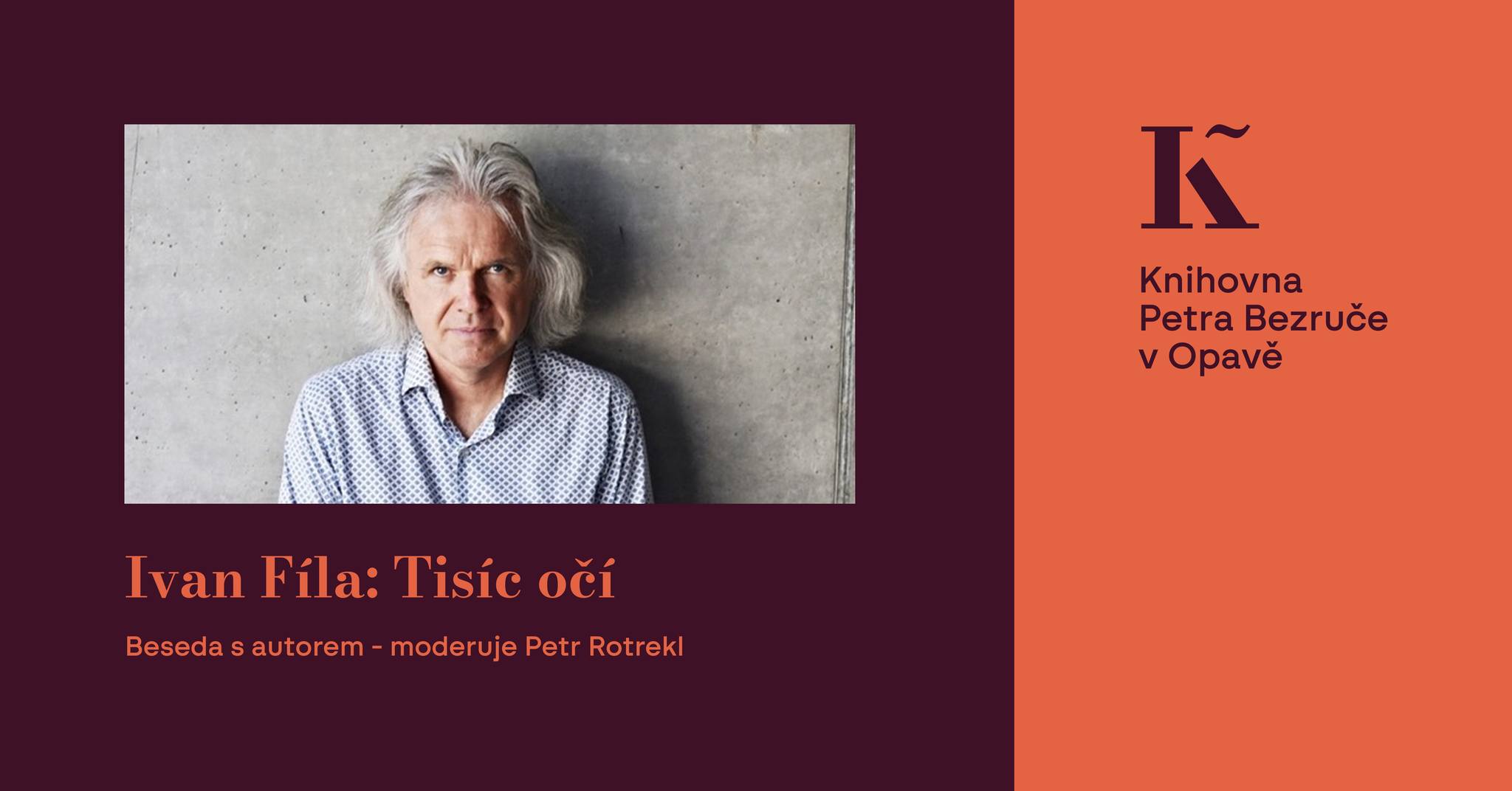 Moderovaná beseda s autorem o knize Tisíc očíMísto konání: Knihovna Petra Bezruče v Opavě, Nádražní okruh 695/27, Opava