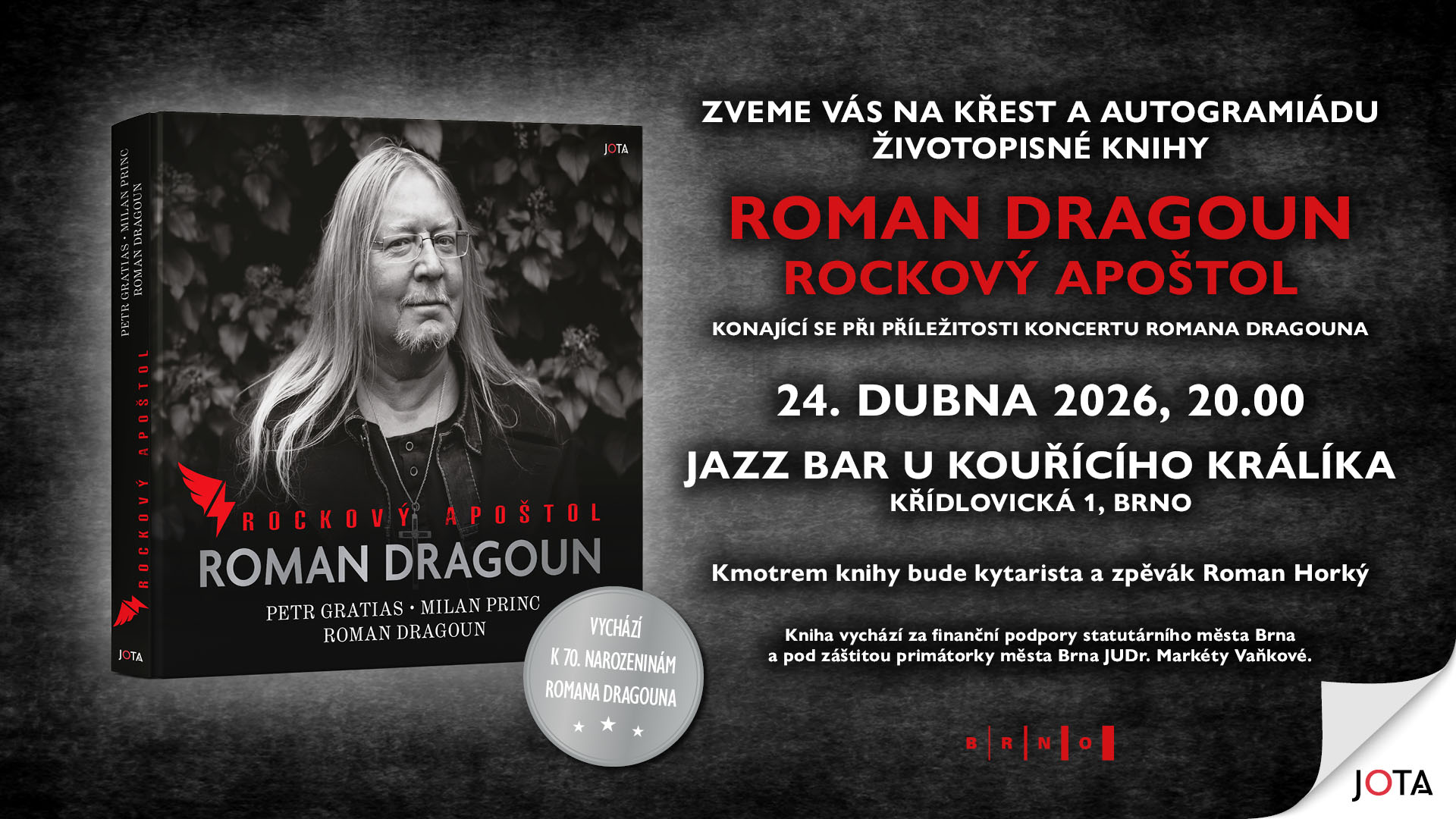 Srdečně zveme na koncert Romana Dragouna spojený se křtem a autogramiádou biografie Roman Dragoun. Rockový apoštol. Kniha Petra Gratiase, Romana Dragouna a Milana Prince vychází k 70. narozeninám této rockové legendy. Kmotrem knihy se stane kytarista a zpěvák Roman Horký.