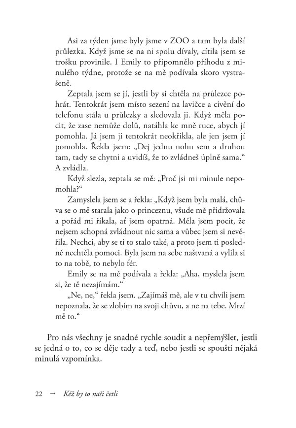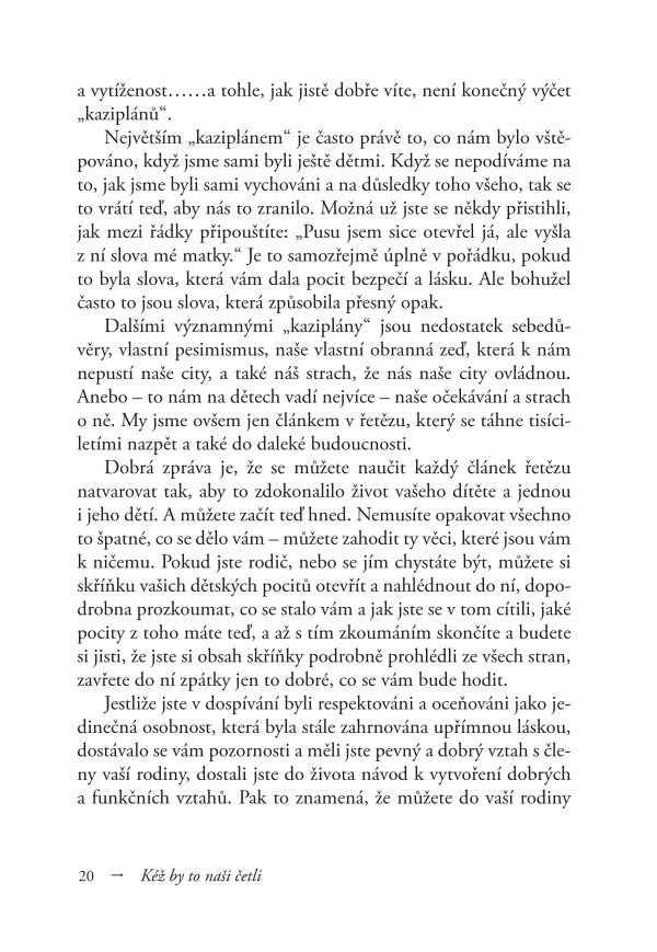 Kéž by to naši četli, která nehodnotí, nýbrž moudře radí, je přesně to, co si každý rodič chce přečíst, a každé dítě chce, aby už to udělali. Je to kniha o tom, jaké vztahy máme se svými dětmi, co stojí v cestě dobré komunikaci a co ji může zlepšit.