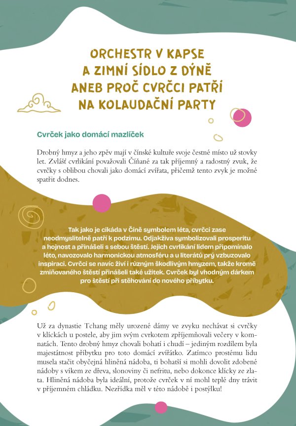Dominika Sakmárová, sinoložka a autorka úspěšných knih Kočičí kožich a velbloud u Velké čínské zdi a Korejské halušky, vám v nové knize poodhalí bezmála stovku překvapujících a nezřídka úsměvných zajímavostí z čínské a korejské kultury a představí několik historických období, od časů první čínské dynastie až po současnost.