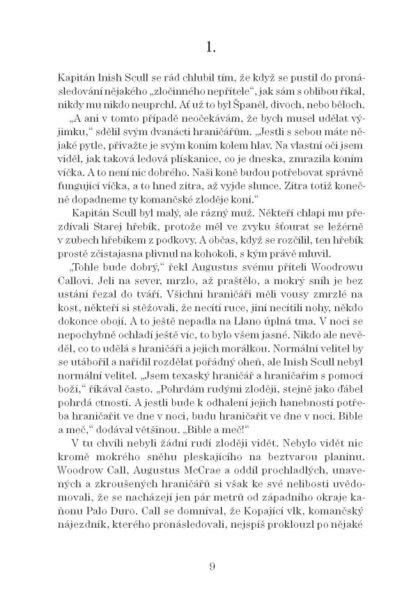 Dva hrdí muži, přátelé, i když každý úplně jiný, se vydají s oddílem hraničářů pronásledovat Buvolí hrb, velkého válečného náčelníka kmene Komančů, Kopajícího vlka, proslulého komančského zloděje koní, a Ahumada, nelítostného mexického banditu lačnícího po mučení. V jejich strastiplné snaze chránit postupující západní hranici před vzdorovitými Komanči, odhodlanými do posledního dechu bránit své území a svůj způsob života, jim pomáhají kumpáni Deets, Jake Spoon a Pea Eye Parker.