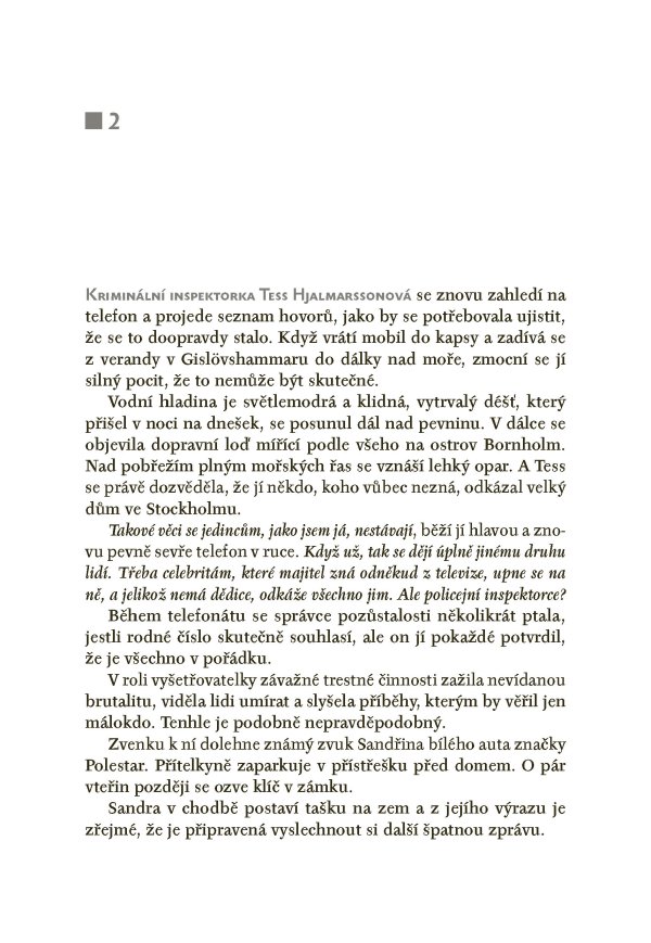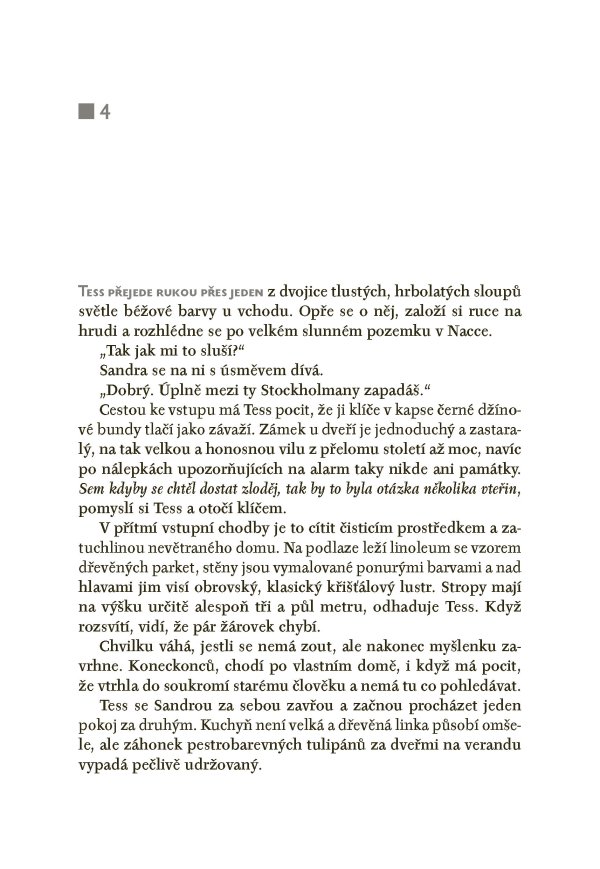 K tomu Tess nečekaně spadne do klína dědictví v podobě velkého domu ve Stockholmu a ona zděšeně zjišťuje, že její přítelkyně Sandra by österlenský venkov zřejmě ráda vyměnila za život v hlavním městě.