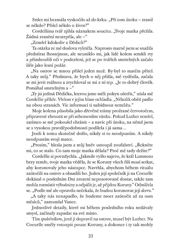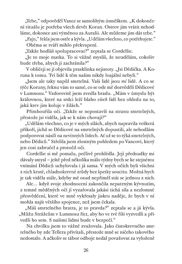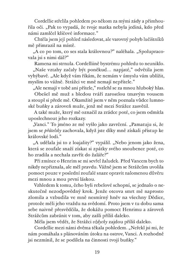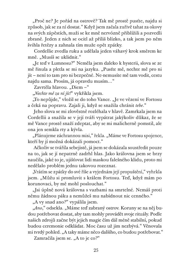Zatímco se rozpadají stará spojenectví a formují nová, Koruny upírají zrak právě na ni. Některé se mohou stát jejími největšími spojenci, jiné ji chtějí vidět mrtvou. Aby mohla Diem jejich krutovládu ukončit, musí rozeznat přítele od soka a zbudovat vlastní armádu, i kdyby to znamenalo riskovat úplně všechno.