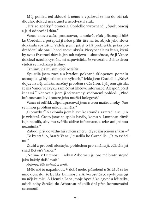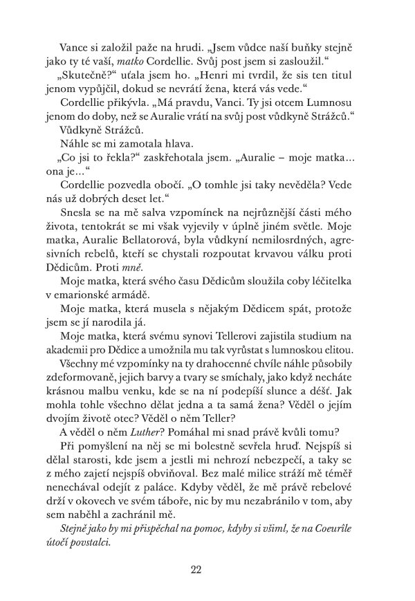 Záhada kolem Diemina původu se začíná rozplétat a ona se spolu s Lutherem vydává na nečekanou cestu napříč říšemi Emarionu. V odpovědích se může skrývat klíč k ukončení války, ale pokud ho Diem chce nalézt, musí se postavit bolestivé pravdě o své matce, své krvi i svém osudu.