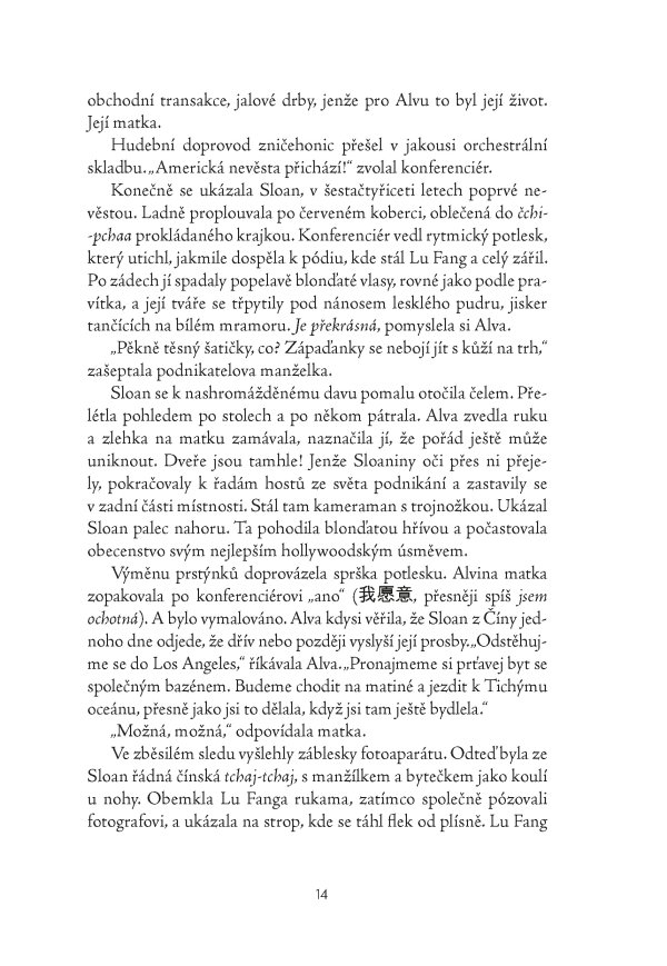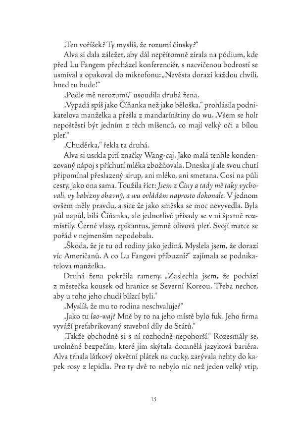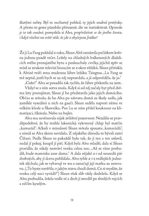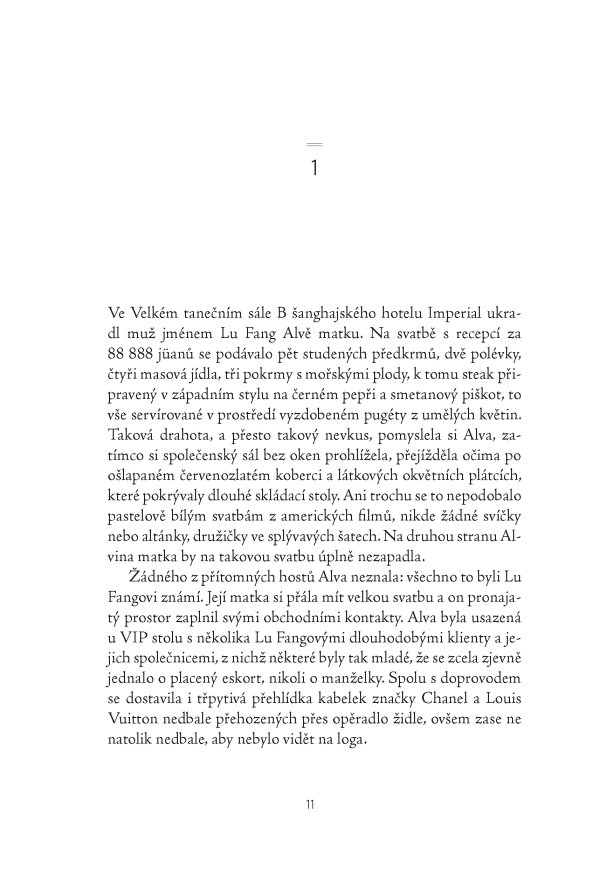 Úchvatný literární debut zasazený do rychle se rozvíjející Číny je zčásti příběhem o dospívání, zčásti rodinným a sociálním dramatem o dvou generacích, které hledají své místo a příležitost v proměnlivém světě