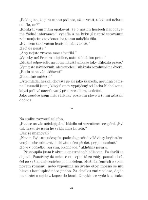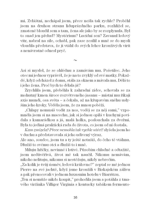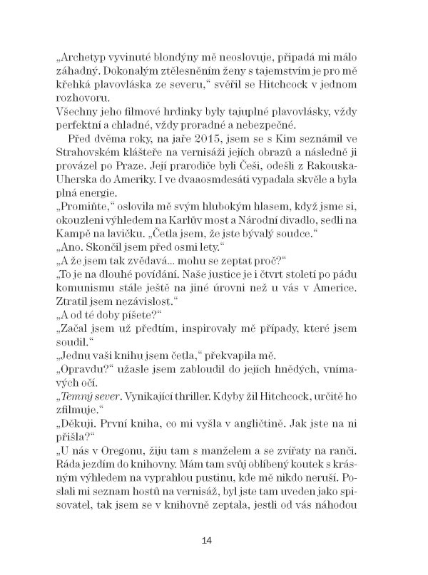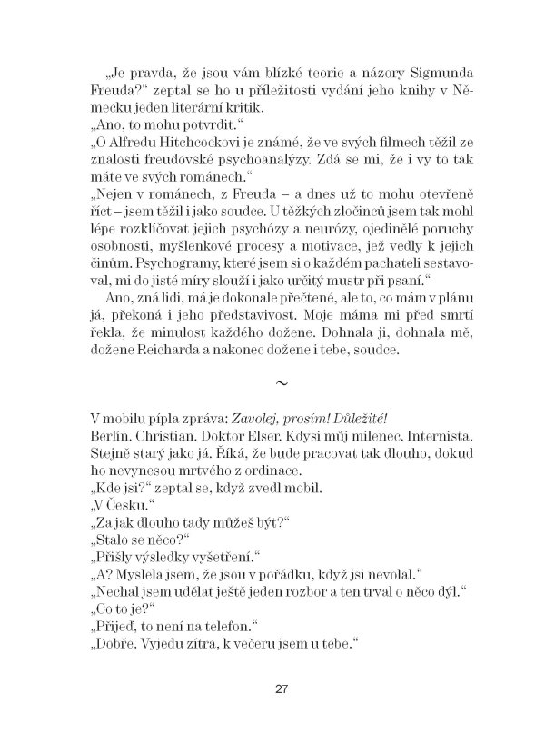„Komplexní, do nejmenšího detailu propracovaný příběh plný napětí, psychologicky plastických a uvěřitelných postav a nádherných filmových obrazů. Věřím, že čtenáře chytne stejně jako mě a nebude moct jíst, spát ani myslet na nic jiného, dokud nedojde na poslední stránku.“