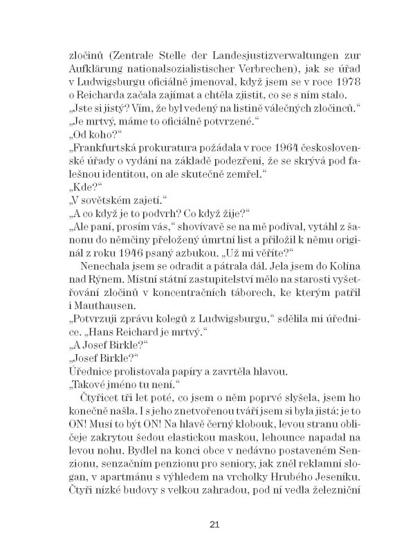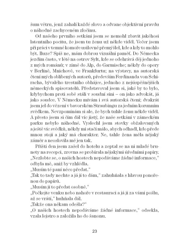 „Ivan Fíla napsal historicko-detektivní román, snad i jakousi českou obdobu detektivek Johna Grishama, kde se proplétá právo a bezpráví; mocní, bezmocní a všemocní; svět tajných služeb, koncentračních táborů, Lebensbornu, vysídlených a dosídlených poválečných Sudet. Při čtení tohoto spletence si můžeme užívat mistrně vyprávěný příběh, a nebude to málo.“
