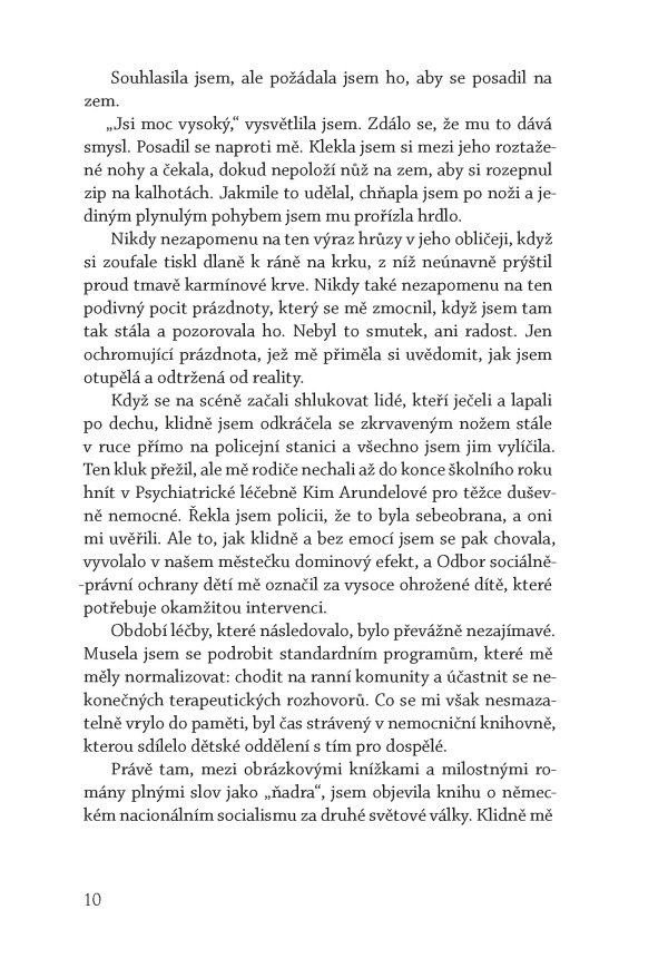 Lea Nachtnebelová je světoznámá pianistka, jejíž koncerty jsou vyprodané na dlouhé měsíce dopředu. Svým uměním okouzlila dokonce i amerického prezidenta. Veřejnost ji vnímá jako hudební ikonu, ale její skutečný život je zahalen temnotou. Když bylo Lee osm let, pobodala staršího chlapce a strávila měsíce v psychiatrické léčebně. Ani tehdy, ani později svého činu nebude litovat.