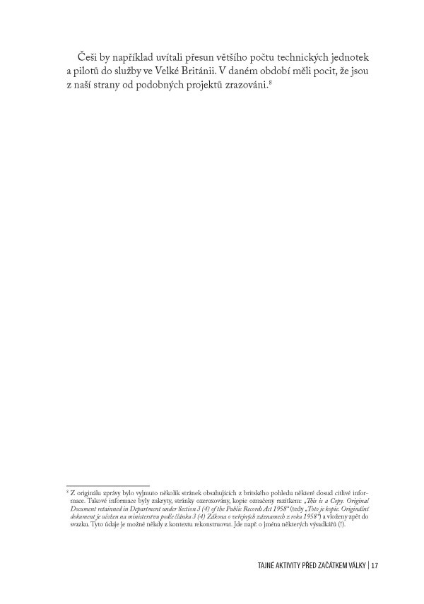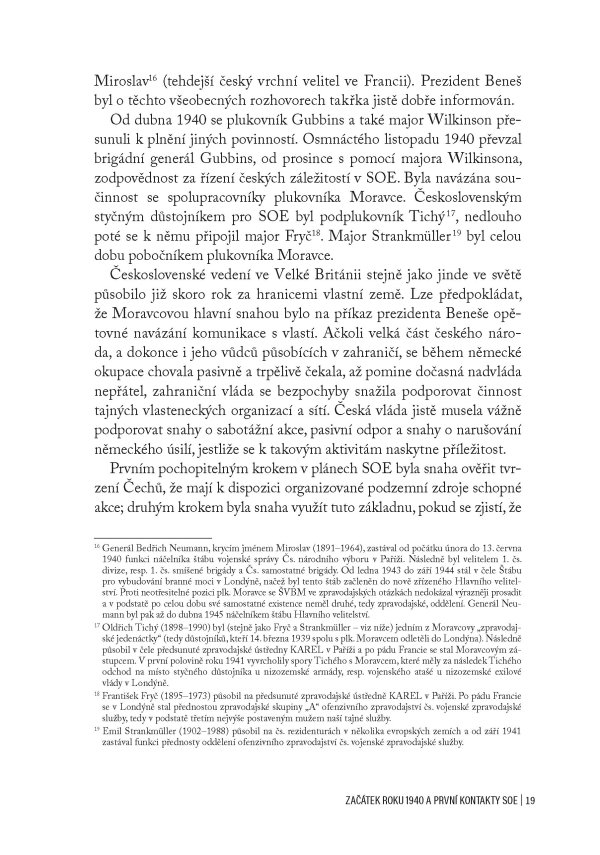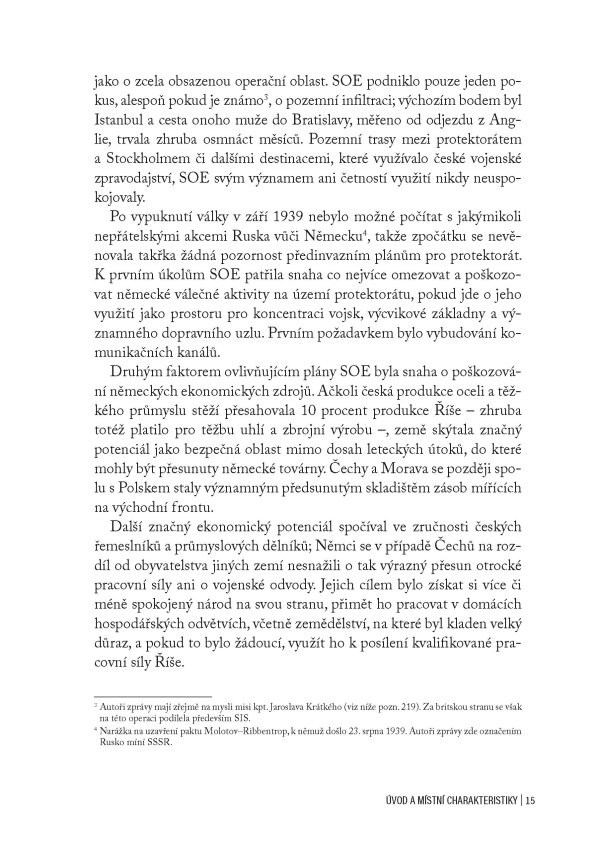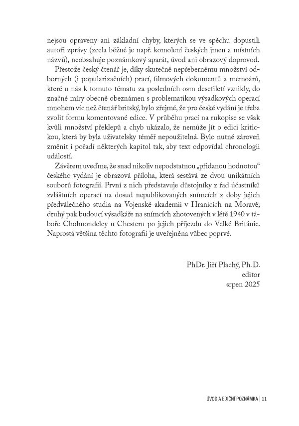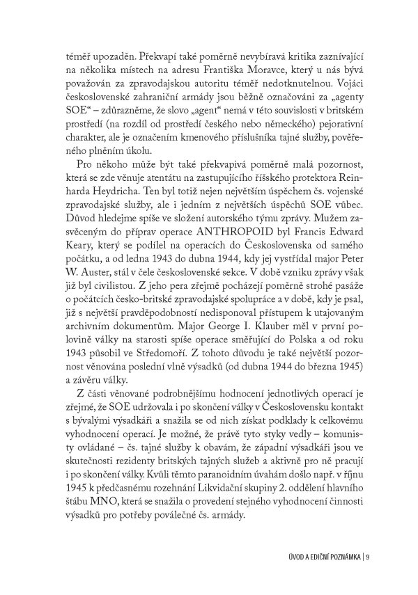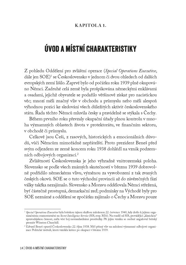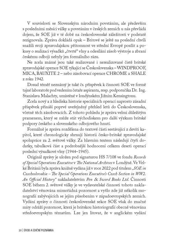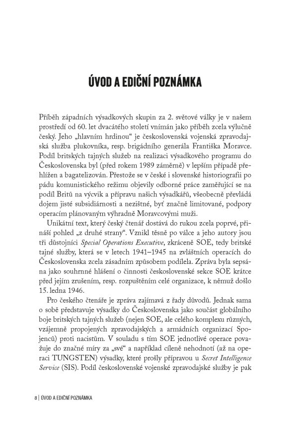 Jedinečná publikace obsahující oficiální zprávu britských důstojníků z roku 1946 o aktivitách SOE na území obsazeného Československa za 2. světové války, doplněná unikátními dobovými fotografiemi a komentáři historika Jiřího Plachého