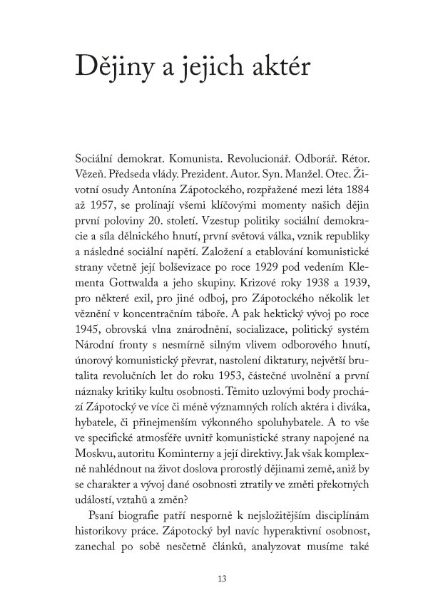 Co se skrývá za přežívajícím mýtem „hodného tatíčka pracujících“ a jaký je skutečný odkaz a dílo člověka spjatého s emancipací dělnictva, založením KSČ, její bolševizací na konci 20. let, převzetím moci a následnou diktaturou? Zápotocký: Příliš mnoho životů od historika Michala Stehlíka je komplexní portrét osobnosti plné rozporů.